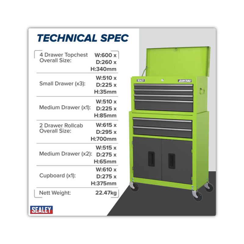 Sealey American PRO® Topchest & Rollcab Combination 6 Drawer - Green/Grey AP2200BBHV