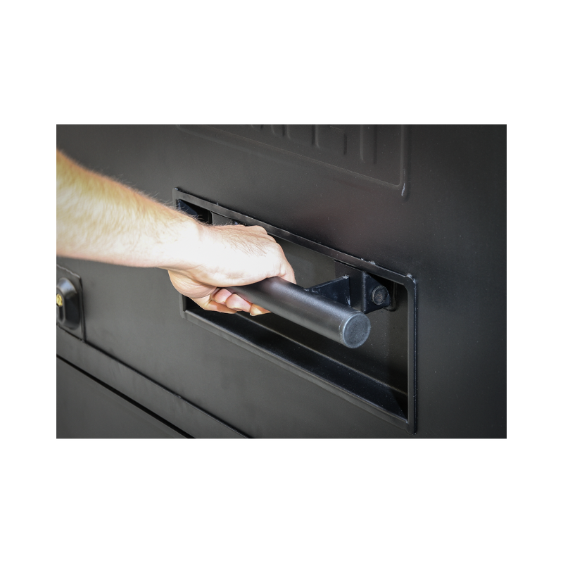 • Features recessed heavy-duty handles on the sides and front to aid manoeuvrability.